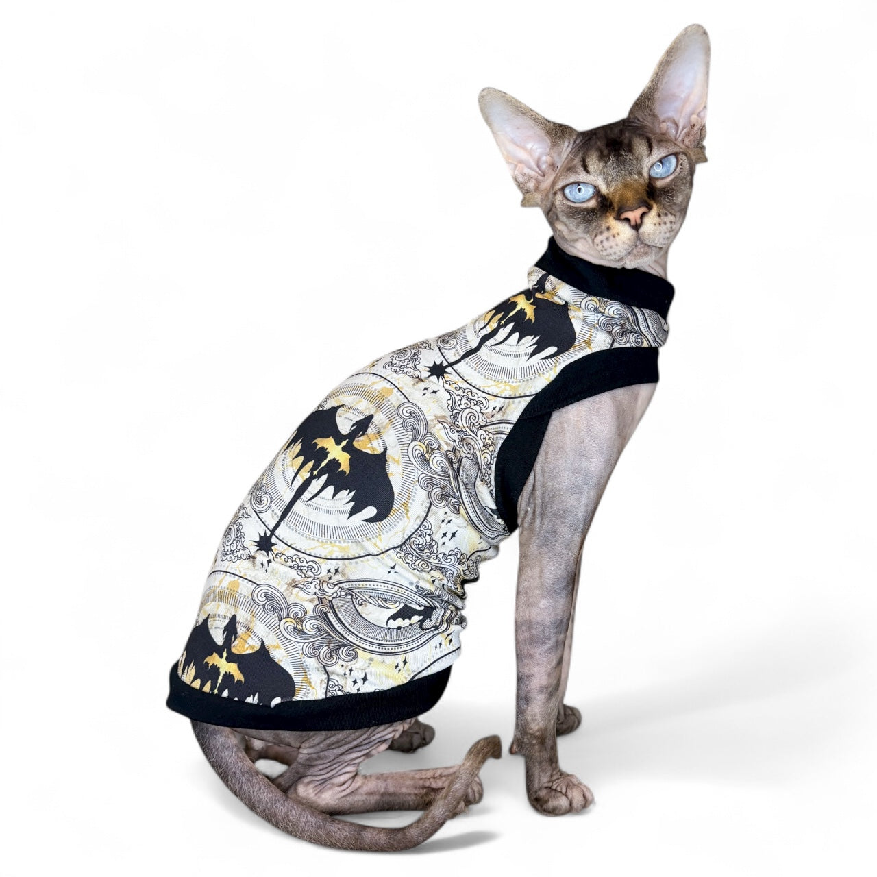 A handmade shirt for your feline family member! Mad Sphynx Design offers a unique shirt with wider neck and arm openings to allow the greatest range of motion for the laziest or most active cats.
