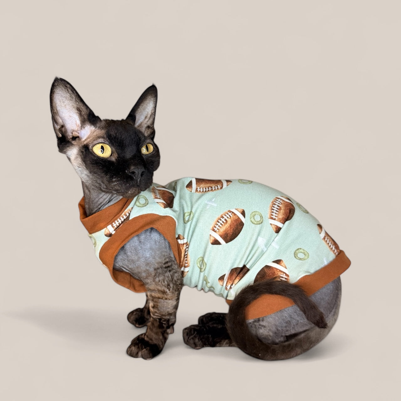 A handmade shirt for your feline family member! Mad Sphynx Design offers a unique shirt with wider neck and arm openings to allow the greatest range of motion for the laziest or most active cats.