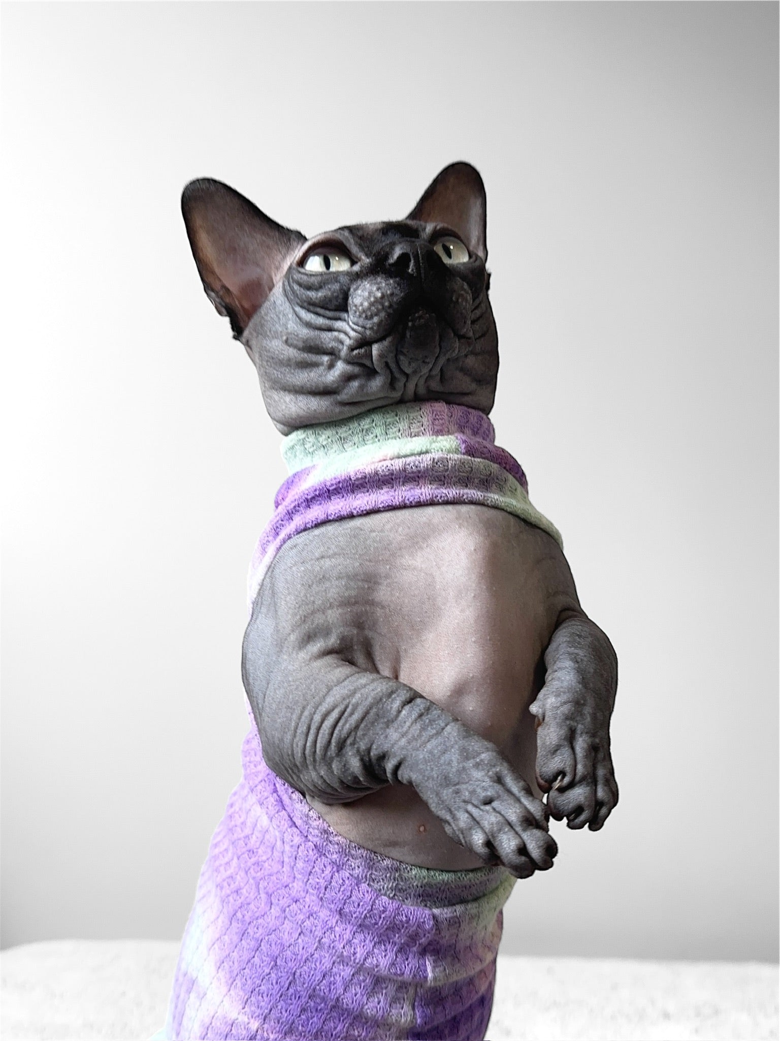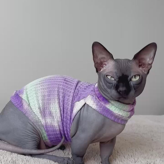 A handmade shirt for your feline family member! Mad Sphynx Design offers a unique shirt with wider neck and arm openings to allow the greatest range of motion for the laziest or most active cats.
