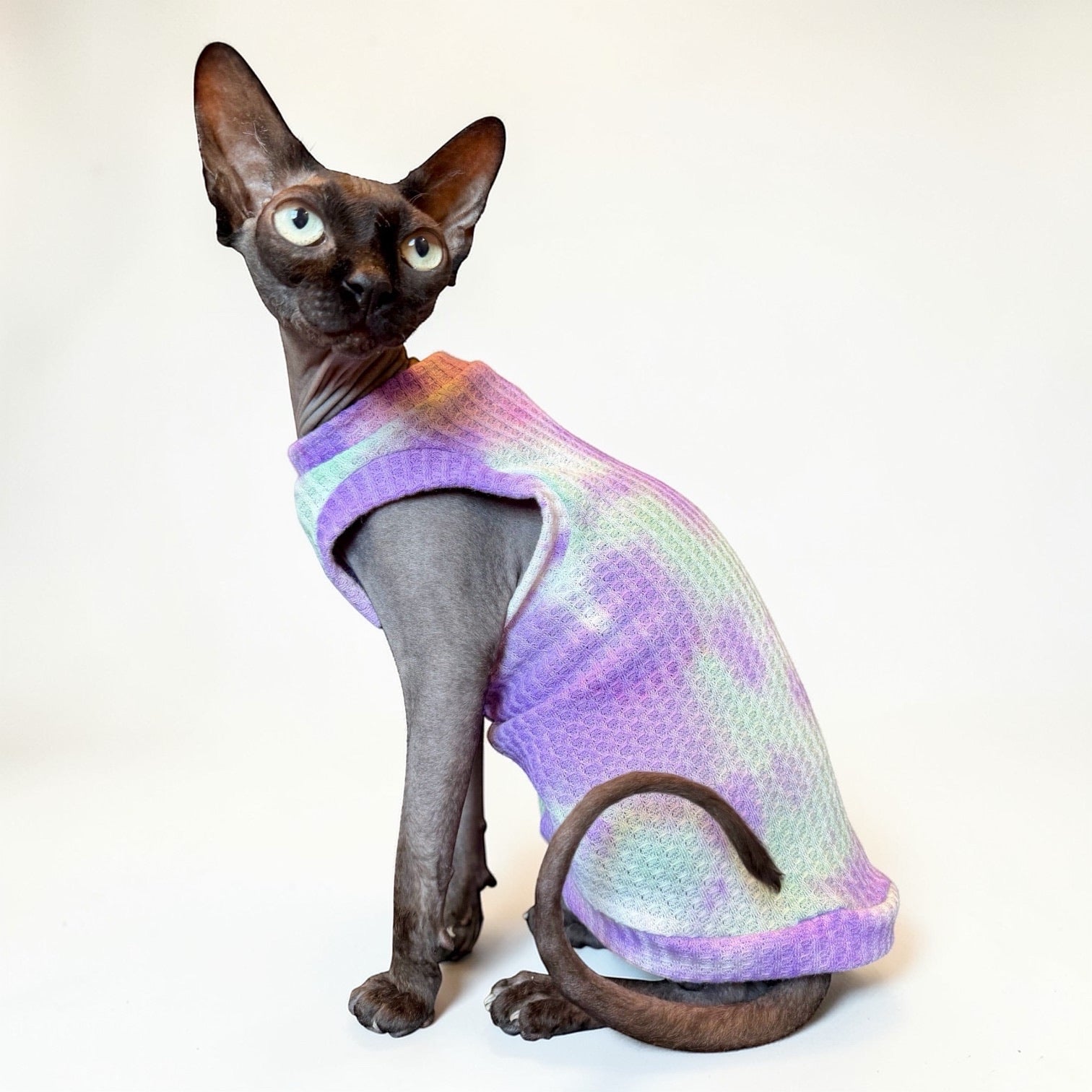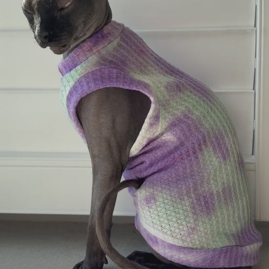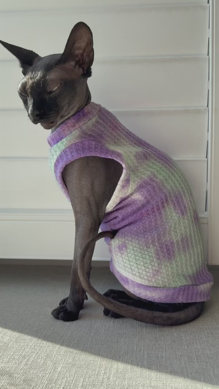 A handmade shirt for your feline family member! Mad Sphynx Design offers a unique shirt with wider neck and arm openings to allow the greatest range of motion for the laziest or most active cats.