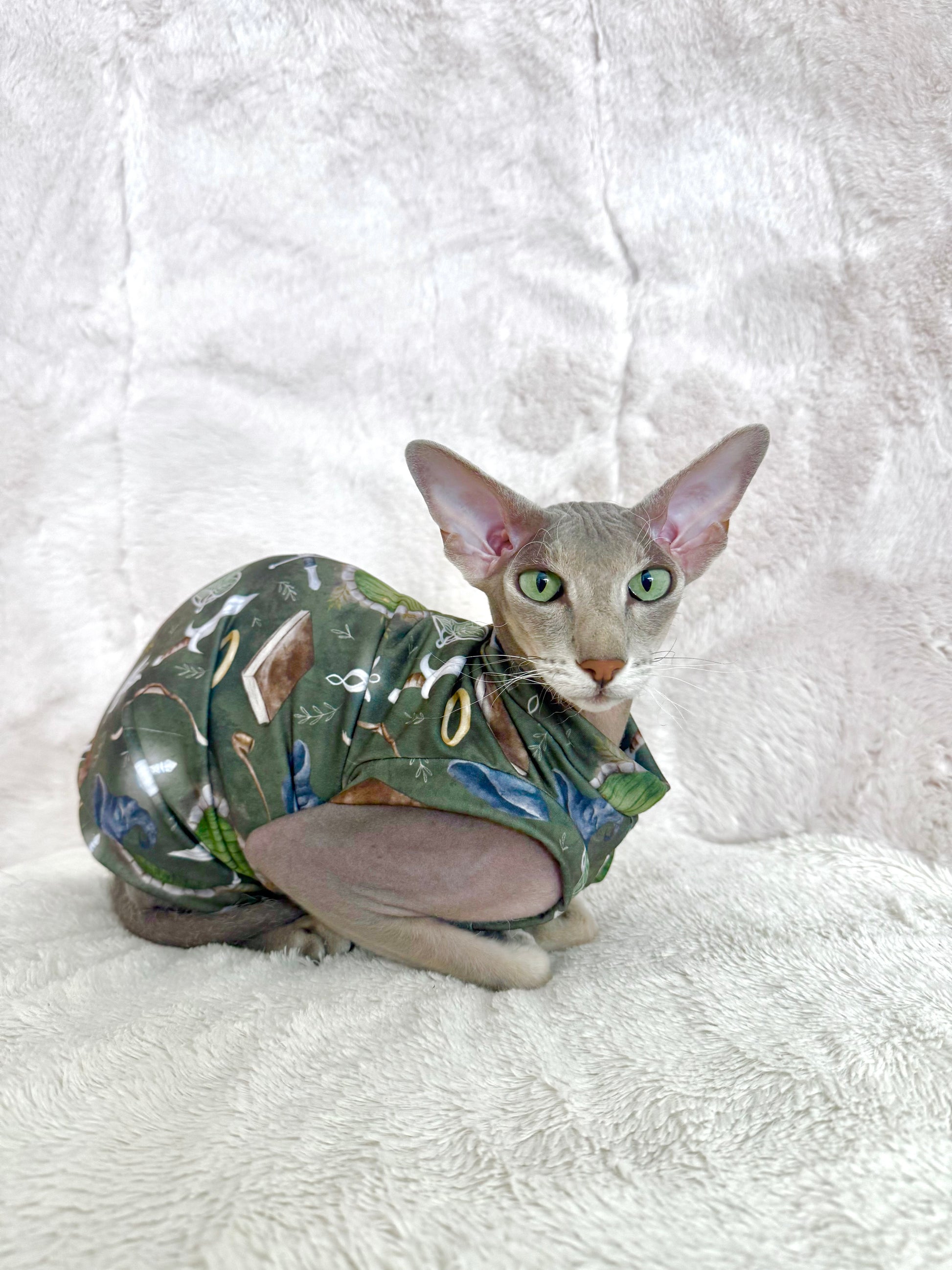 A handmade shirt for your feline family member! Mad Sphynx Design offers a unique shirt with wider neck and arm openings to allow the greatest range of motion for the laziest or most active cats.