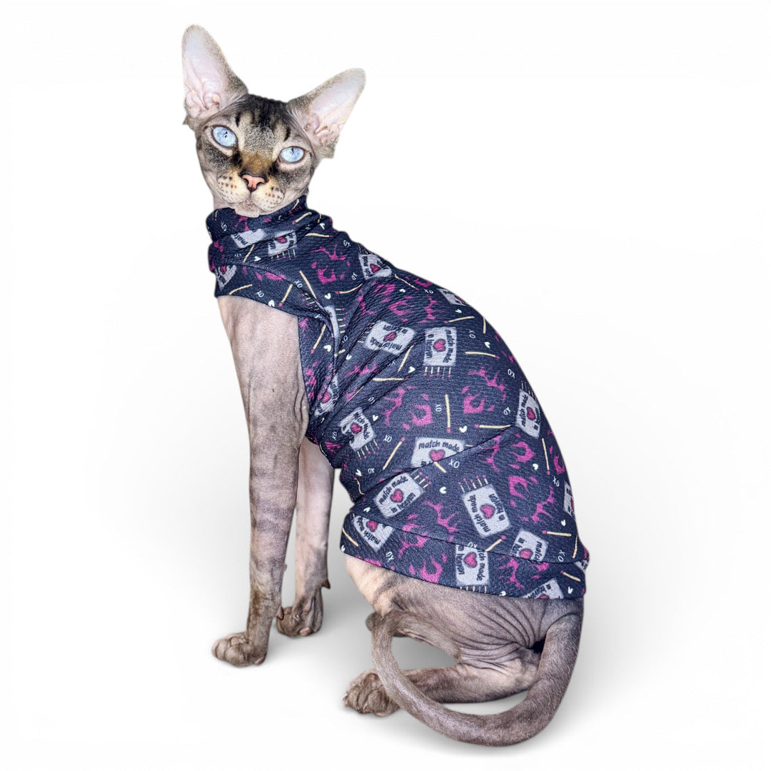 A handmade shirt for your feline family member! Mad Sphynx Design offers a unique shirt with wider neck and arm openings to allow the greatest range of motion for the laziest or most active cats.