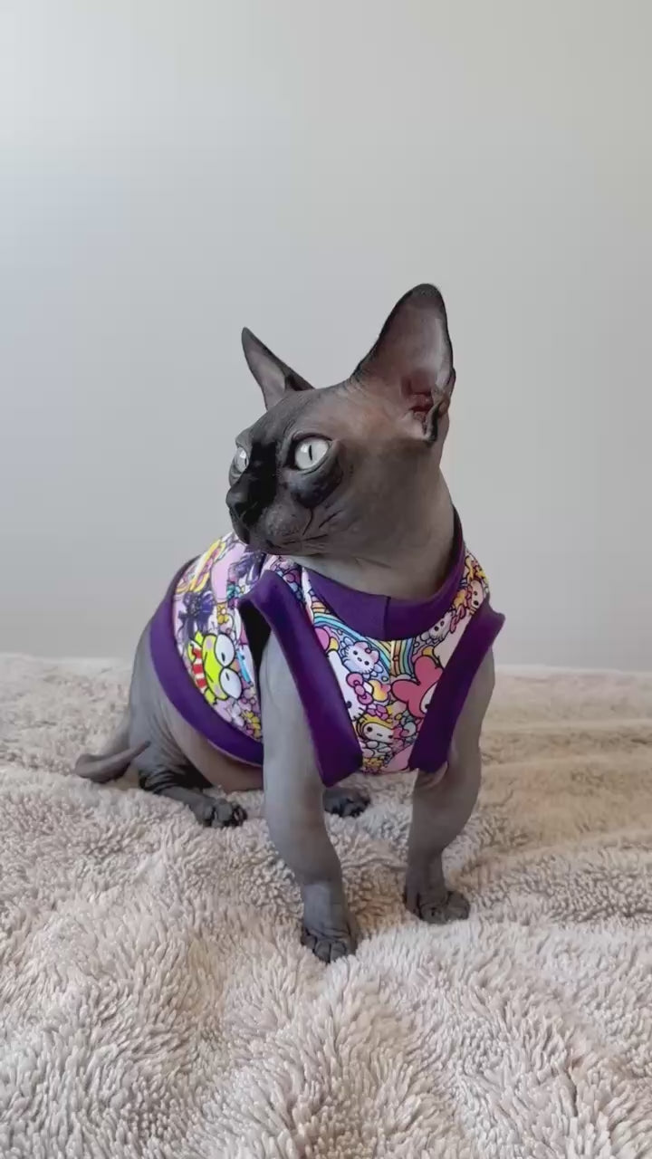 A handmade shirt for your feline family member! Mad Sphynx Design offers a unique shirt with wider neck and arm openings to allow the greatest range of motion for the laziest or most active cats.