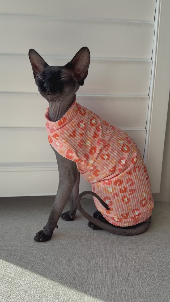A handmade shirt for your feline family member! Mad Sphynx Design offers a unique shirt with wider neck and arm openings to allow the greatest range of motion for the laziest or most active cats.