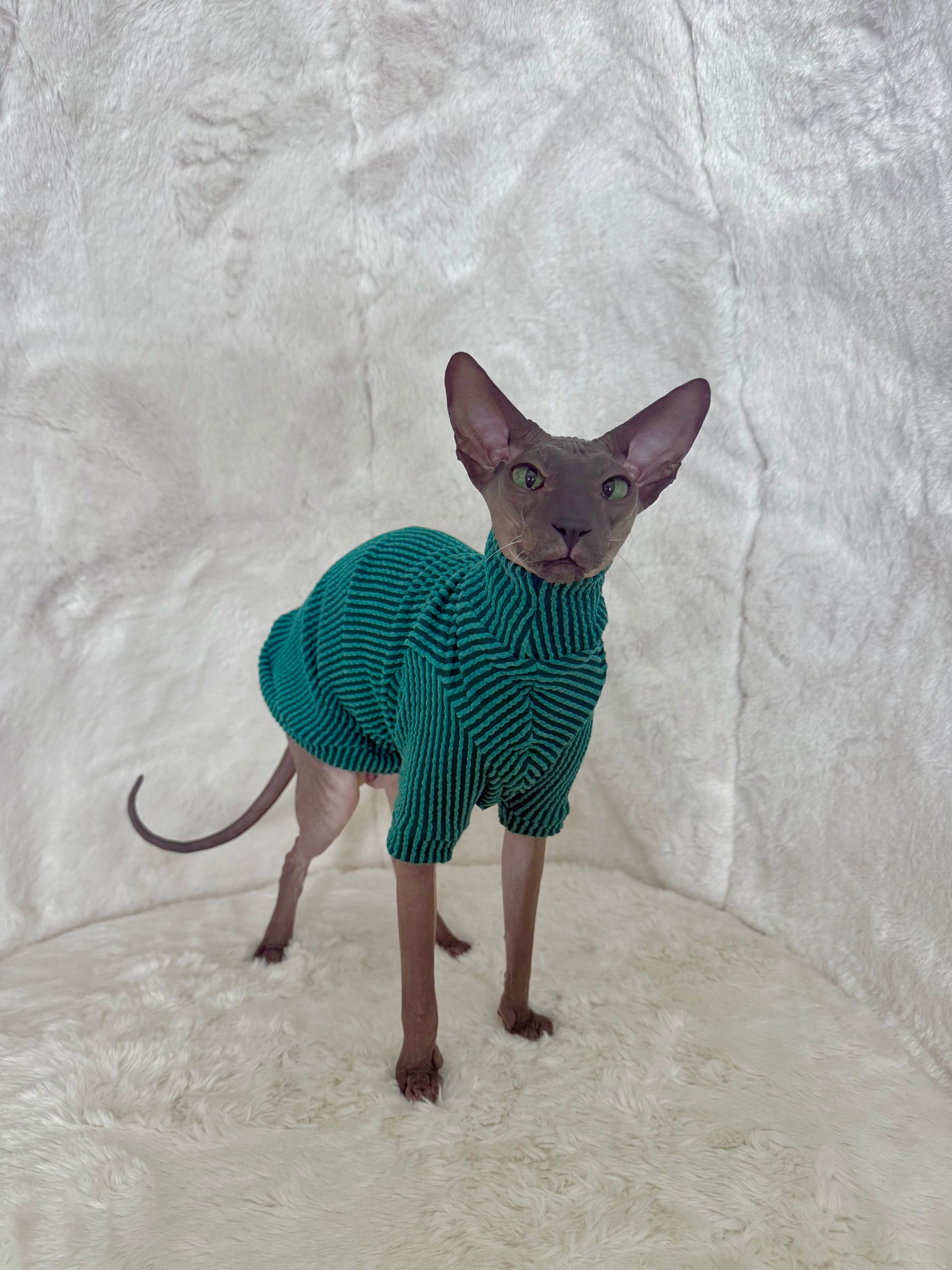 A handmade shirt for your feline family member! Mad Sphynx Design offers a unique shirt with wider neck and arm openings to allow the greatest range of motion for the laziest or most active cats.