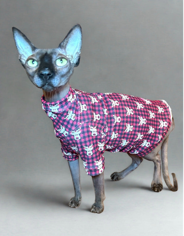 A handmade shirt for your feline family member! Mad Sphynx Design offers a unique shirt with wider neck and arm openings to allow the greatest range of motion for the laziest or most active cats.