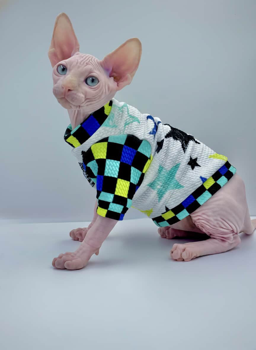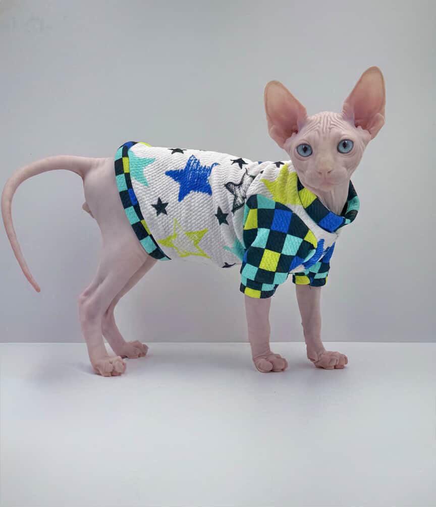A handmade shirt for your feline family member! Mad Sphynx Design offers a unique shirt with wider neck and arm openings to allow the greatest range of motion for the laziest or most active cats.