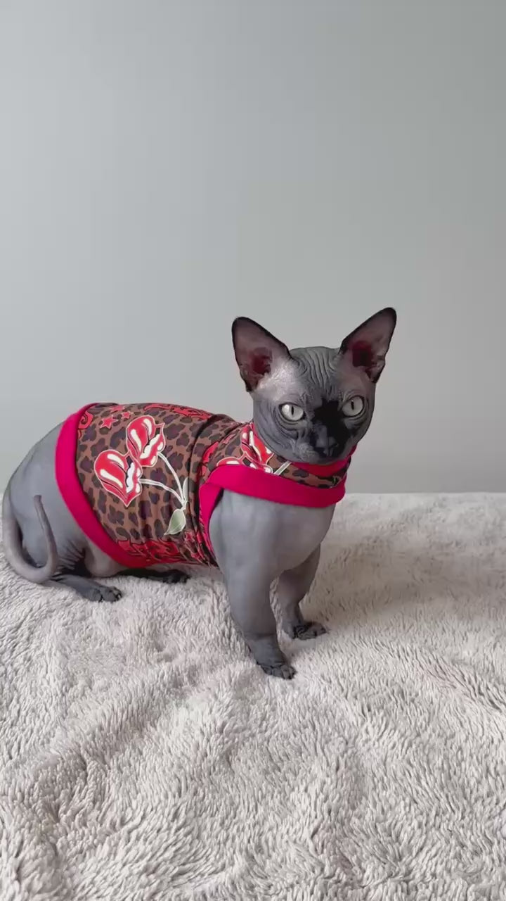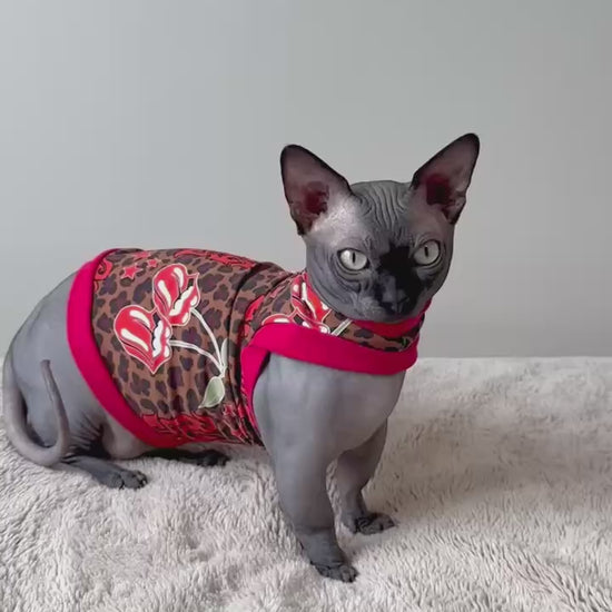 A handmade shirt for your feline family member! Mad Sphynx Design offers a unique shirt with wider neck and arm openings to allow the greatest range of motion for the laziest or most active cats.