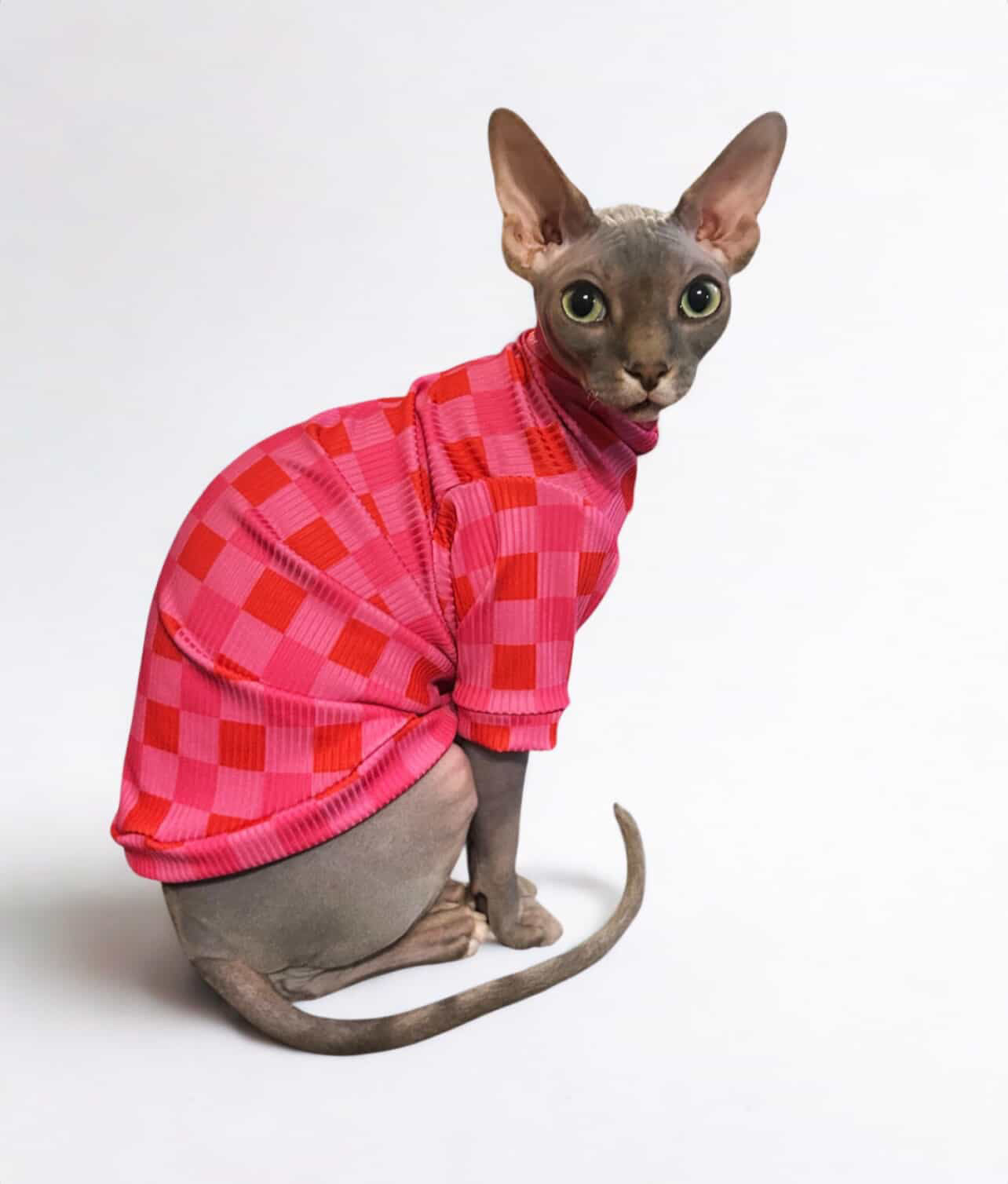 A handmade shirt for your feline family member! Mad Sphynx Design offers a unique shirt with wider neck and arm openings to allow the greatest range of motion for the laziest or most active cats.